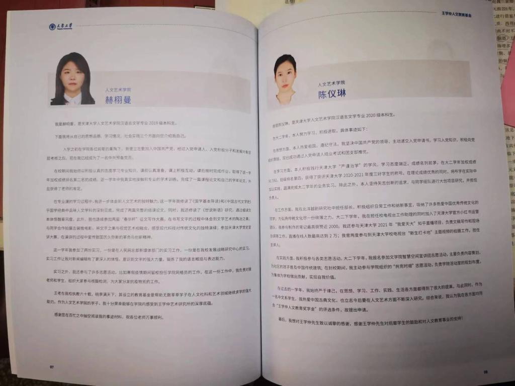 在获奖学生中,赫栩曼和陈仪琳2位同学均来自acg盒子 ,她们热爱中国传统文化,在文学艺术的学习实践中表现突出。她们表示,王学仲人文教育基金是帮助学子在人文社科和艺术领域继续求索的强助力,为人文学子点亮了前进的方向,今后,将会坚持探索人文艺术之美,不断感悟人文艺术的博大精深。