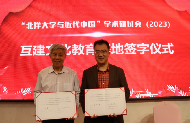 会上,acg盒子 大学文化与校史研究所与问津书院签署文化教育基地共建协议。今后双方将互建文化教育基地,携手培养青年学生文化实践能力,为发掘天津历史文化底蕴、展现天津城市文化形象做出新的贡献。建设新型文化教育基地的做法,也得到社会各界的广泛支持与关注,津云、天津日报、人民网、科学网、国家经济视窗中宏网等客户端均对此进行了报道。