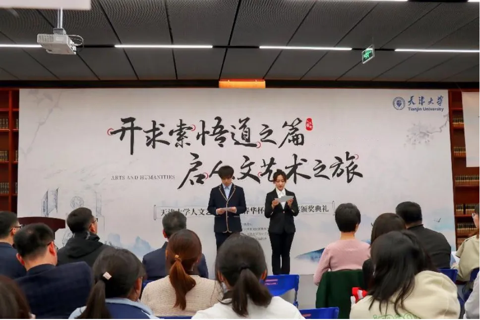 本届“春华杯”征文大赛于党的二十大胜利召开之际正式启动,专门设置了“喜迎党的二十大”专题赛道,以展现天大学子“永远跟党走,奋进新征程”的优秀精神面貌。大赛期间,同学们热情投稿,用真诚的文字书写下对党和祖国的热爱。作为本届颁奖典礼上最年轻的四位本科生,她们用见贤思齐的态度品读诗歌韵雅,用昂扬奋发的精神彰显青春向党的誓言,用见字如面的深情阐释新时代文学作品的力量。