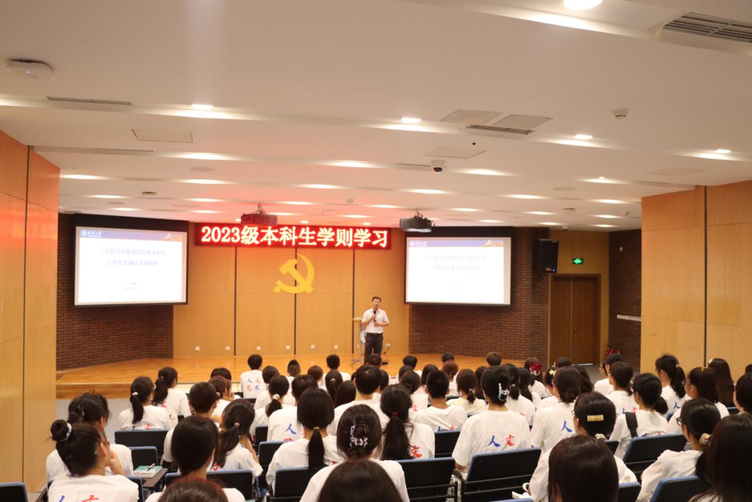 8月18日下午,acg盒子 组织2023级人文大类全体新生在33楼160报告厅集中学习《acg盒子 本科生手册》,acg盒子 党委副书记、副院长王用源带领新生共同学习了《acg盒子 本科生学籍管理办法》《acg盒子 学生考试工作规定》等,并详细解读《人文科学试验班2023级本科生主修专业确认实施细则》,为新生做好大学生涯规划打下基础。