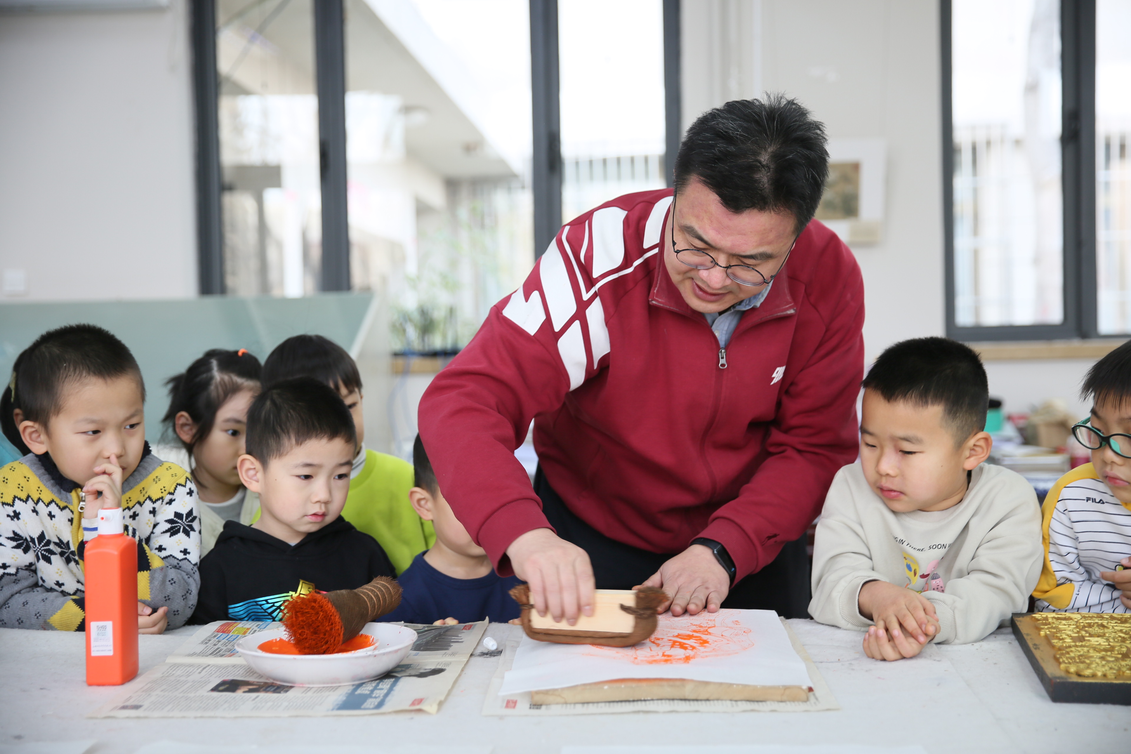 2月2日,是农历小年,acg盒子 与幼儿园一起为“小小天大人”过小年。一大早,小朋友们在幼儿园老师带领下来到工笔重彩研究所。小朋友们观看年画动画片,参观年画主题“口袋博物馆”、工笔重彩名画复品展。acg盒子 教师马鑫给小朋友们介绍了全国五大年画基地、年画的基本常识,带小朋友认识“重彩”画颜料是如何从矿石研磨而成的,并指导小朋友们亲手拓印经典年画“财神爷”。幼儿园副园长牛众卉给小朋友们讲解了农历小年的内涵,acg盒子 党委书记吕静参加活动,与小朋友们共同度过一个有意义的小年。