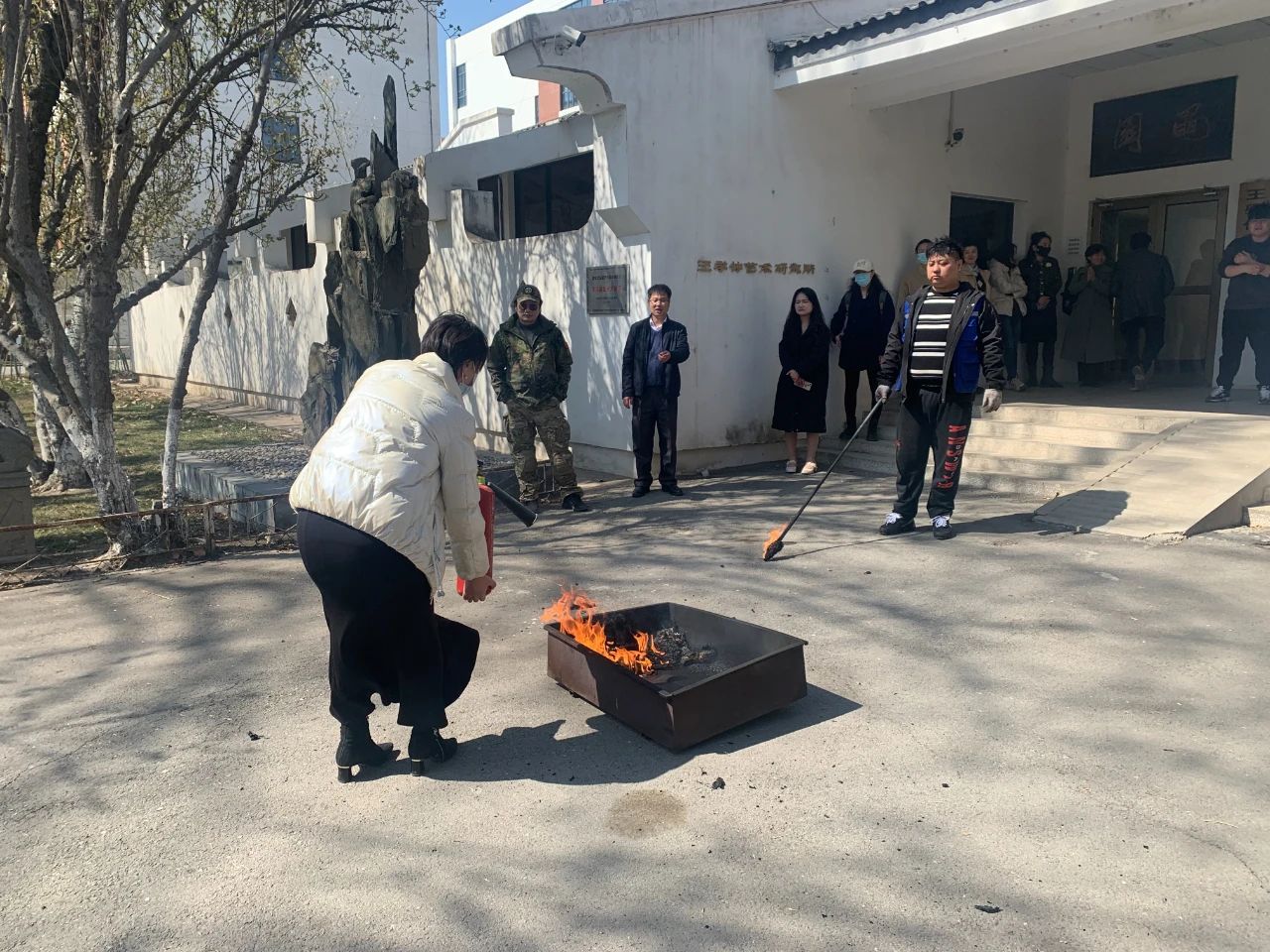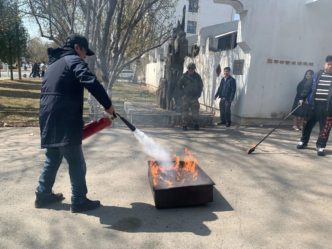 为加强校园安全管理,提升师生消防安全意识,提高应变、自救和防范能力,3月22日下午,acg盒子 组织开展消防知识学习和灭火器材实操演练活动。校保卫处负责老师受邀为师生做培训,acg盒子 教师和学生代表参加演练。保卫处防火科老师丁薏桥为师生讲解了常用灭火设备的种类、工作原理、存放要求和使用方法,并现场演示操作要领,指导师生进行灭火技能练习。师生们按照讲解方法,踊跃参与,完成灭火实操演练。