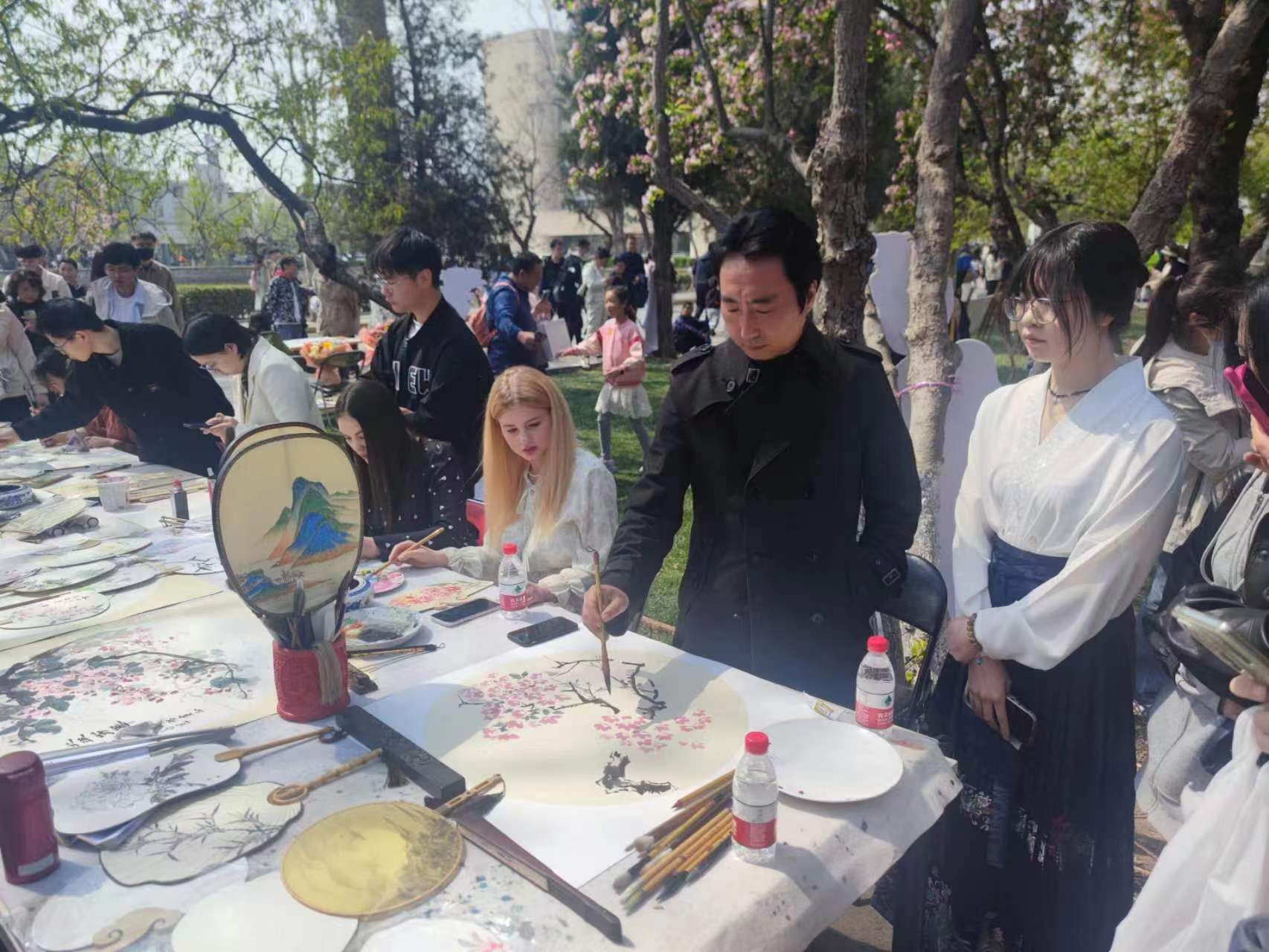 海棠树下,副教授刘珺与师生观众一起进行 “画以疗心——海棠树下画海棠”书画写生活动。活动融入心理疗愈课程理念,让参与活动的师生来宾在绘画中尽情表达对自然美的感悟,放松身心,愉悦心情,一簇簇形态各异的海棠花跃然纸上。活动不仅是艺术的体验,更是心灵的疗愈与美的启蒙。