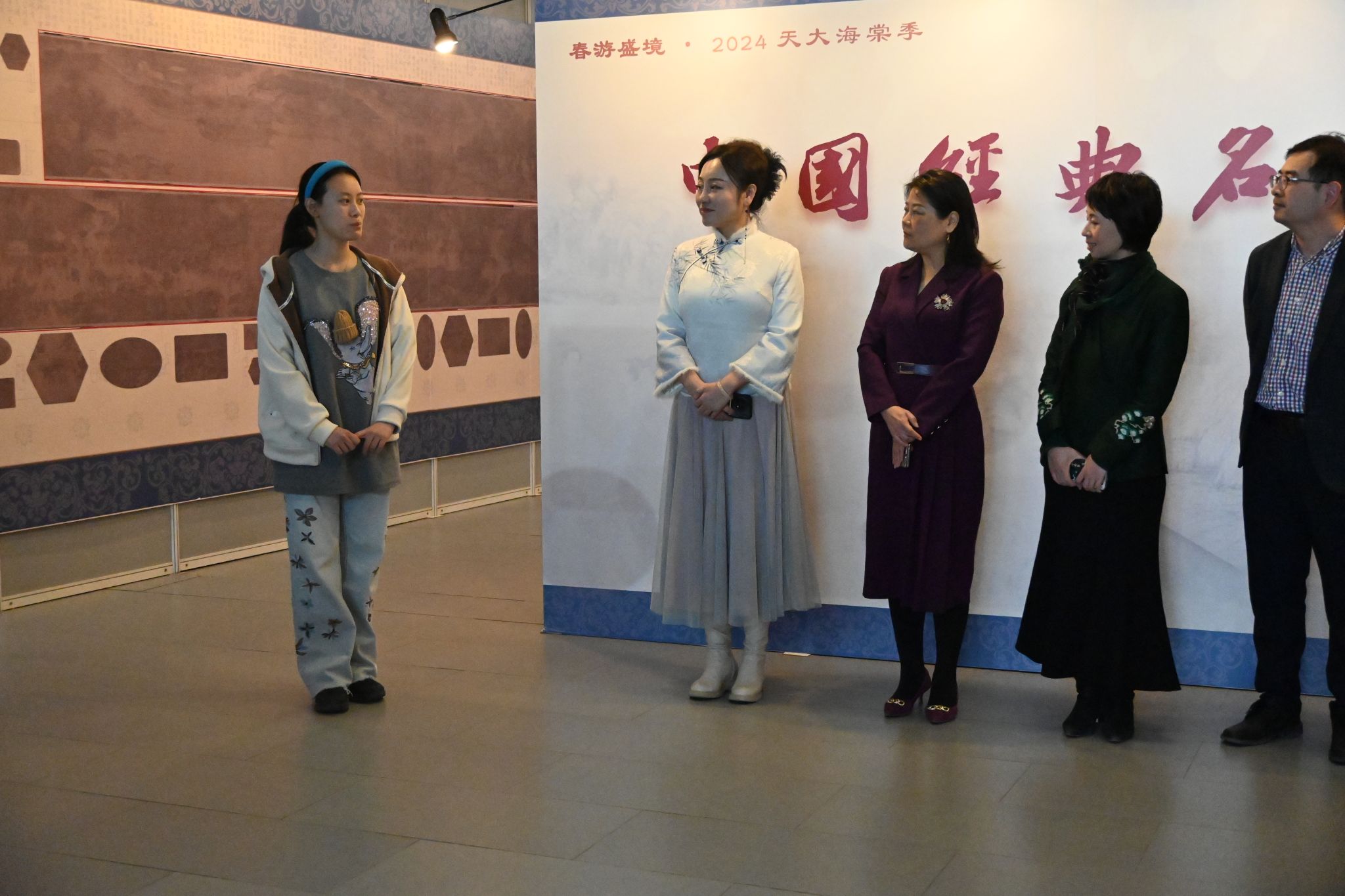 校党委副书记雷鸣到现场参观画展,她表示,希望通过举办中国经典名画展,让工科类院系师生充分感受经典艺术的魅力,陶冶艺术情操,提升审美水平与人文素养,弘扬中华美育精神。