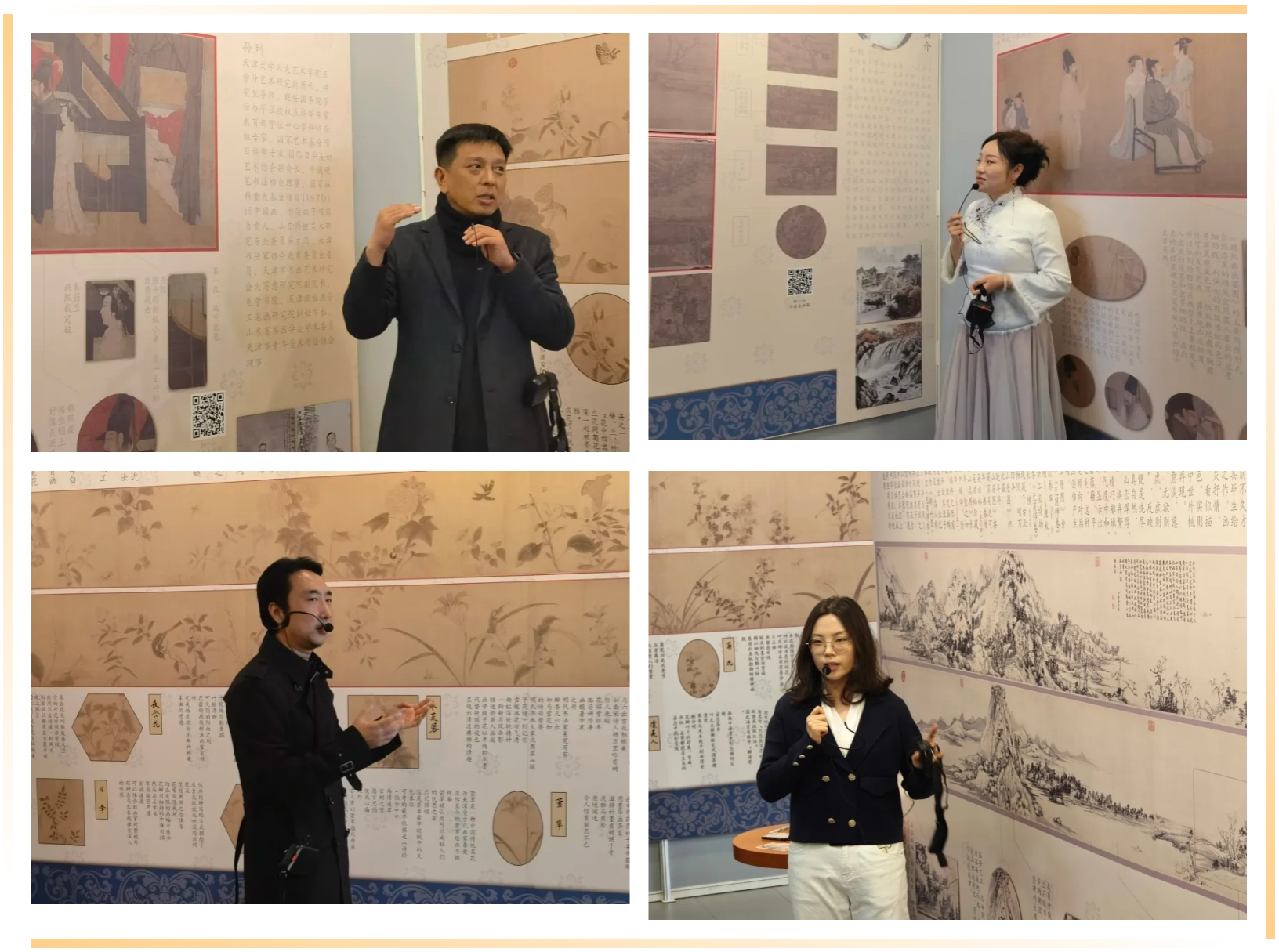 品鉴会课程讲授环节,师生共同踏上文化艺术之旅。现场展示的《韩熙载夜宴图》《清明上河图》《百花图卷》《富春山居图》中国画经典名作图板,被详细圈注了学习鉴赏要点及艺术创作概要。