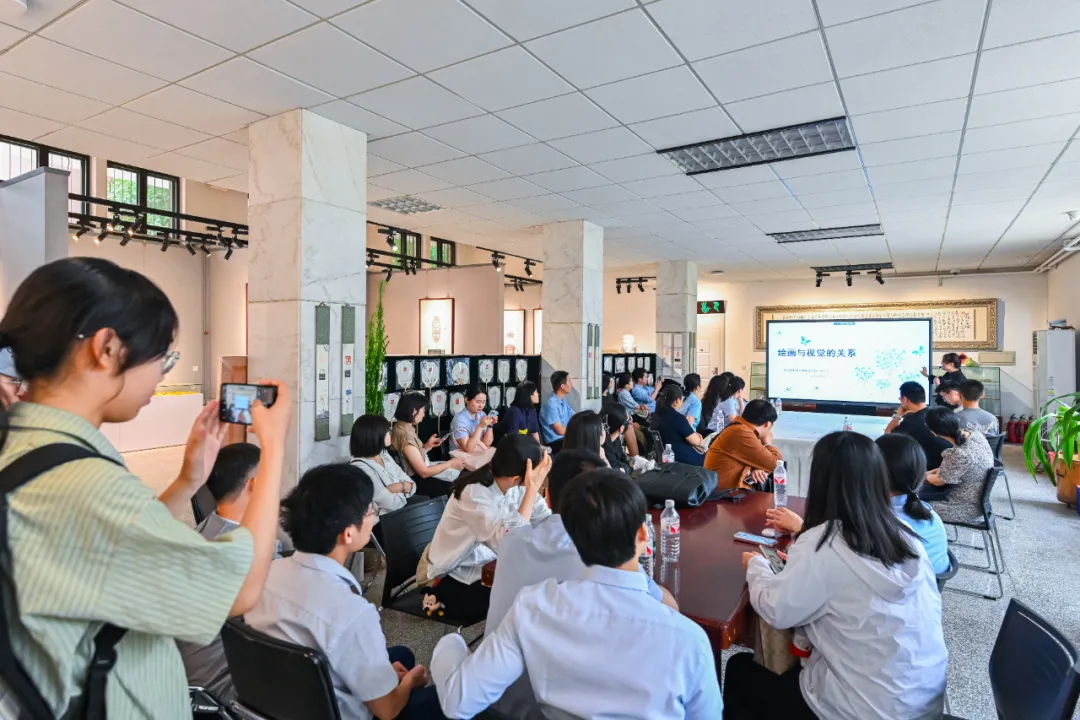 参观结束后,爱尔眼科医院“优才计划”学员刘千千带来了“绘画与视觉的关系”主题报告,报告不仅涵盖了视觉形成的基本科学原理,还深入探讨了视觉如何影响绘画艺术,以及艺术家如何通过绘画来表达他们独特的视觉体验,为大家揭示了视觉与绘画之间复杂而微妙的联系。与会人员积极参与讨论,围绕医学与人文等话题进行了深入而富有成效的交流。