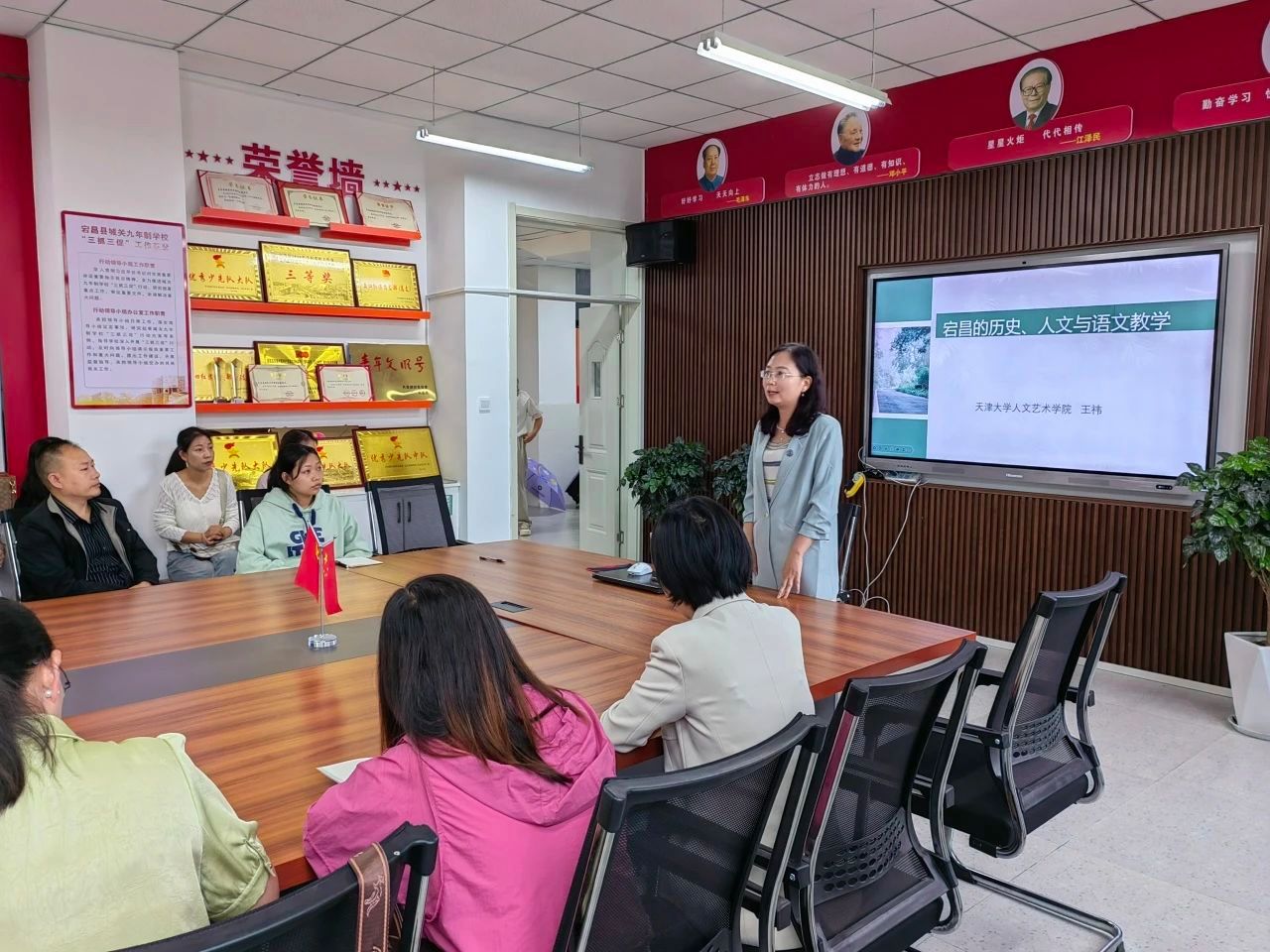 7月29日上午,acg盒子 中文系教工党支部书记、副主任王祎在宕昌城关九年制学校为宕昌县中小学教师、职业学校教师及文化馆员,作题为“区域优秀传统文化与语文教学”的专题培训,并进行了交流座谈。