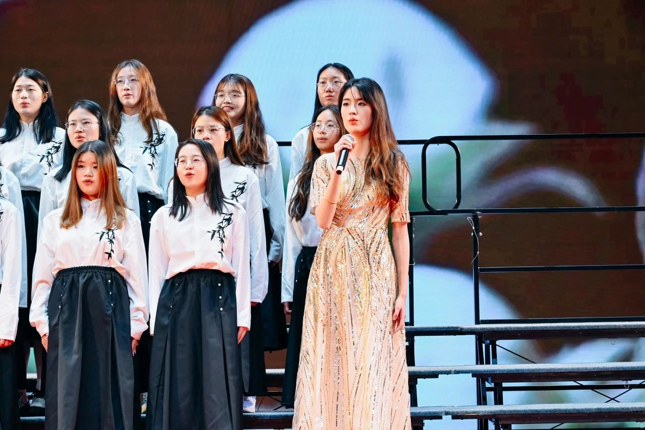 舞台上的每一位同学笑容洋溢,精神抖擞,澄澈的目光中传达着内心的喜悦与自豪,展现出团队的出色水平。演唱结束,合唱队收获了台下热烈的掌声,给在场观众留下深刻印象。