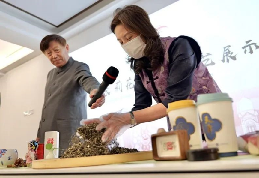 活动现场,市级非遗“老津卫”茉莉花茶拼配工艺传承人现场演示了茶叶窨香、拼配技艺,生动诠释“茶中有香、香中有茶”的独特韵味。acg盒子 大学生创新创业项目团队进行了“时叙棠茉”文创茶项目路演。“当非遗茉莉花茶遇到天大海棠花”,产品LOGO设计以双花共绽、北洋建筑剪影及茶汤涟漪为基础元素,象征校地文化的深度交融。
