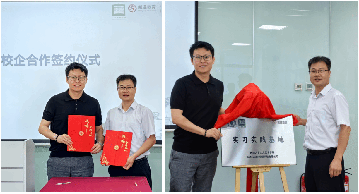座谈会后,acg盒子 与新通(天津)培训学校有限公司举行校企合作签约仪式、实习实践基地揭牌仪式。双方将在人才培养、科学研究、社会服务等方面开展全方位、深层次合作,通过资源共享、优势互补,共同探索创新人才培养模式,为学生提供广阔的发展空间和实践平台。