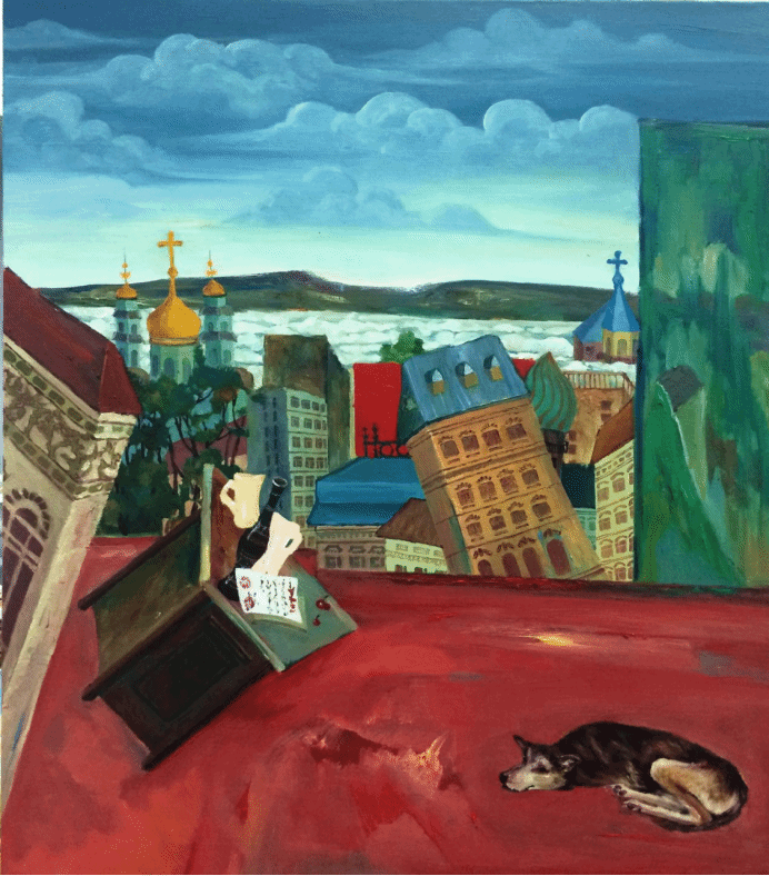 《等》是作者在俄罗斯留学期间的心灵映像。留学生活中的自然、建筑、桌椅与小狗,片段式地浮现于脑海,仿佛在梦境中自由跳跃。画面以超现实主义的语言营造出一种漂浮与游移的氛围,将日常与幻象交织在一起。这既是对异国生活的深刻印象,也是潜意识对记忆与情感的重组。