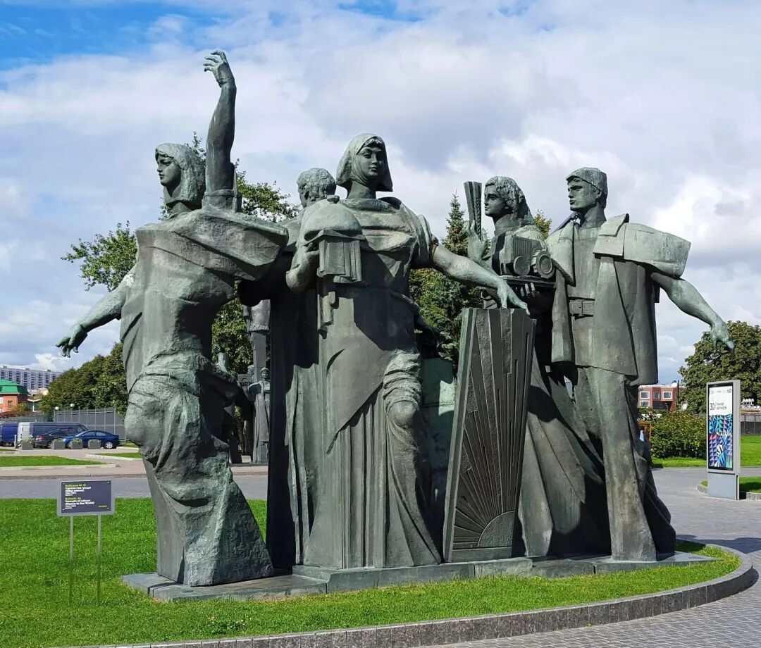 手捧面包的女子象征土地与丰饶,体现传统的好客与祝福;持模型拖拉机的男子象征现代农业、劳动创造与科技进步;年轻的舞者或青年象征青春、喜悦与劳动节庆的氛围;持枪的战士象征守护和平、捍卫劳动成果的力量。作品整体表达出劳动带来繁荣、和平需要守护的主题。作品强调只有依靠劳动和团结,才能创造美好生活,同时也需要强有力的守护者来捍卫和平。