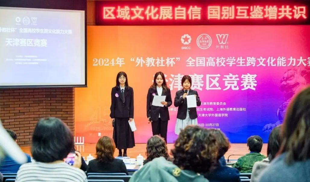 除了知识方面,竞赛更考验选手的逻辑思维与临场应变能力。指导教师与选手线上线下沟通,寻找解题思路,梳理理论框架,做足准备;对选题立意、剧本逻辑、口语表达、肢体表达等各方面精雕细琢,有效提升。选手们在指导教师的帮助鼓励下,在开放和谐的师生沟通中不断进步。最终,在天津赛区决赛中,以深厚的跨文化知识、扎实的语言基础、机敏睿智的临场反应给评委留下了深刻印象,展现了人文艺术学子勤勉向上、积极自信的精神风貌。